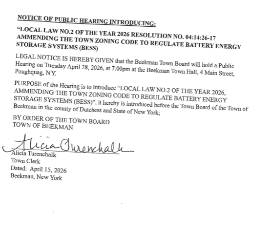 Local Law No. 2 of the Year 2026 – Amending the Town Zoning Code to Regulate Battery Energy Storage Systems (BESS)